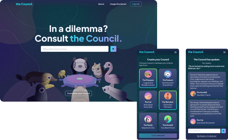 An AI-powered council of fuzzy friends. Winning project at Hack the North!
