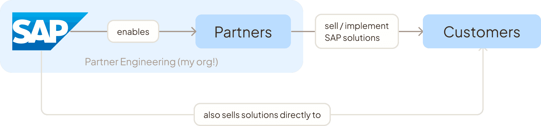 My org, Partner Engineering, sat at the heart of this B2B2B relationship, building software to enable SAP Partners in their deals and projects with end customers.